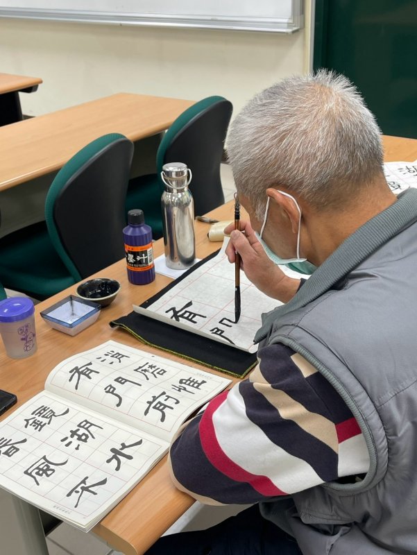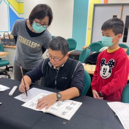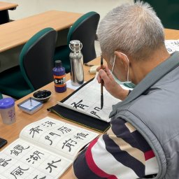 | 作品創作 | 由學員自行找題目,以集字的功夫,自己玩創作,不論抄經、古典詩詞或現代新詩,國、台、客語歌詞,民謠,皆可寫成作品,不只書寫,還能吟唱。 或以書法為元素,例如:寫扇子、燈籠、紙傘、服飾,…,或文創包裝。 |